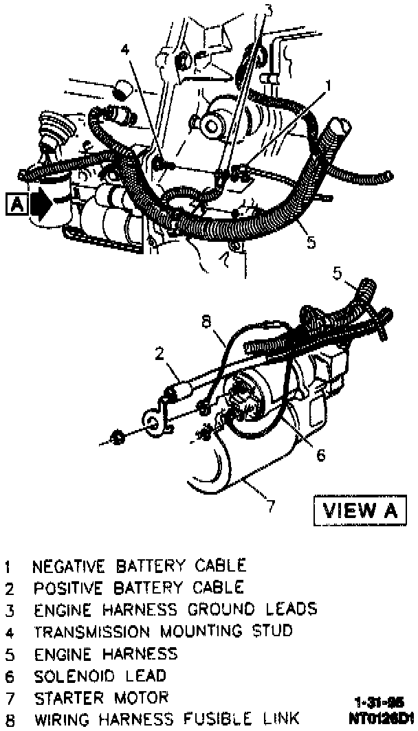 NOTE: When installing positive battery cable to starter solenoid, the inner nut on the solenoid battery terminal must be tightened before battery cable and other leads are installed. Failure to do so will result in solenoid terminal and/or solenoid damage.