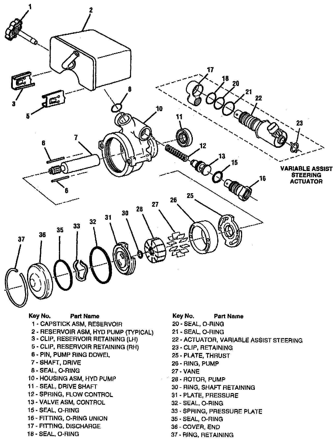 3. Retaining clips (3) and (5) to reservoir (2) and housing (10).