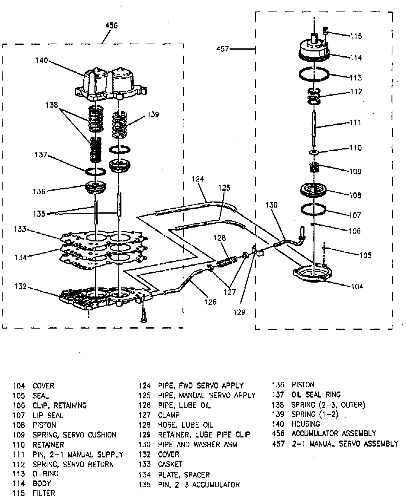 7. Accumulator assembly, 2-1 manual servo piston assembly and filter, and seal.