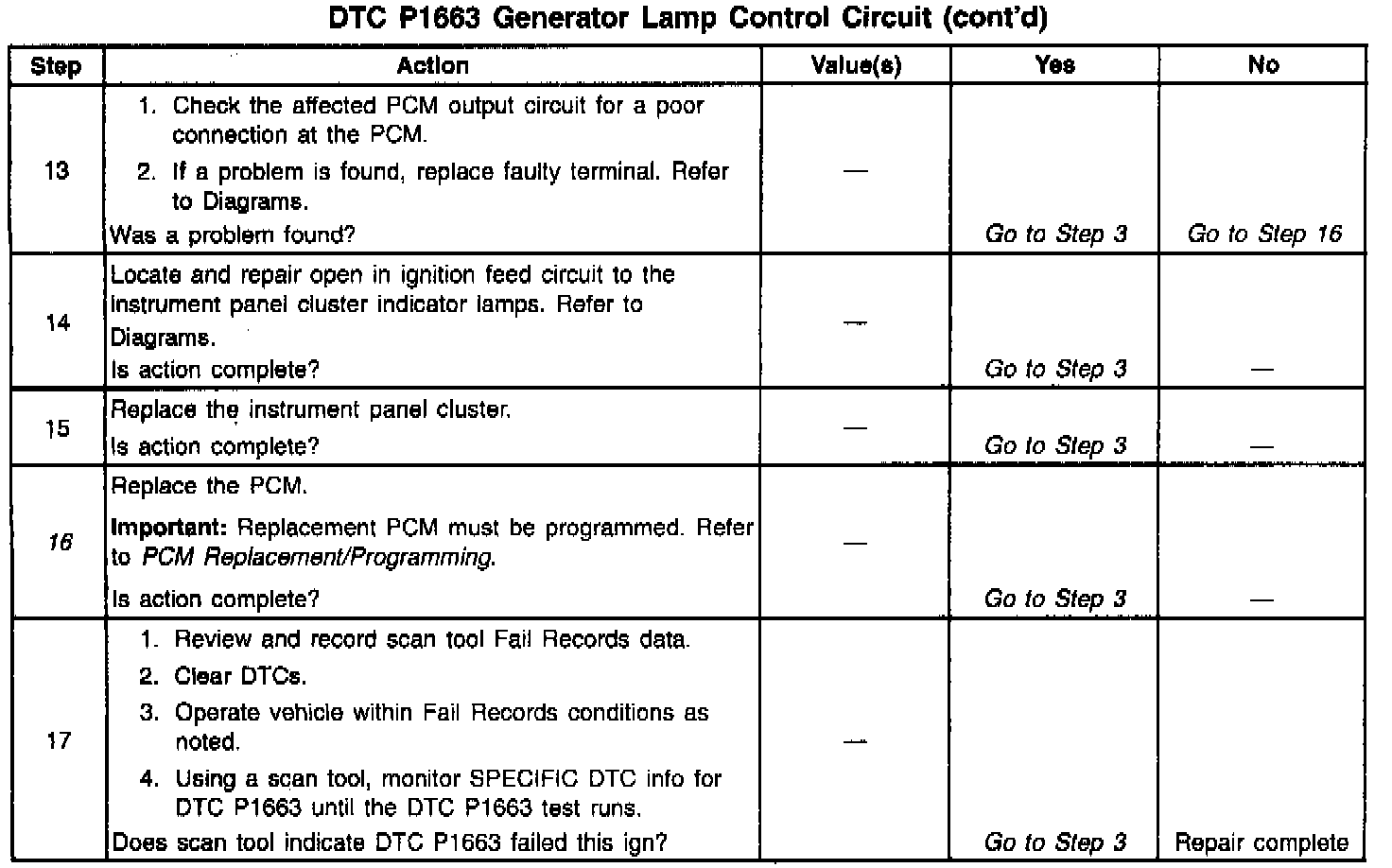 ^ When the engine speed is below 2000 RPM and the generator Pulse Width Modulation (PWM) control circuit duty cycle remains low for longer than 20 seconds.