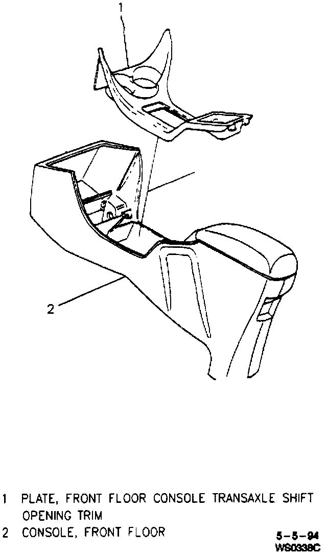 3. Front floor console transaxle shift opening trim by prying with small flat-bladed tool. Pry gently at two rear tabs with small flat-bladed tool.