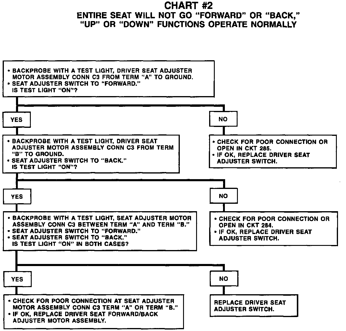 Chart #2 Entire Seat Will Not Go FORWARD/BACK, UP/DOWN Functions Operate Normally: