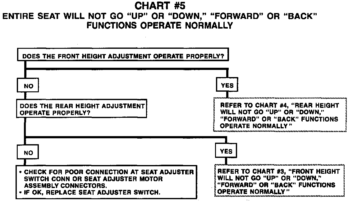 Chart #5 Entire Seat Will Not Go UP/DOWN, FORWARD/BACK Functions Operate Normally: