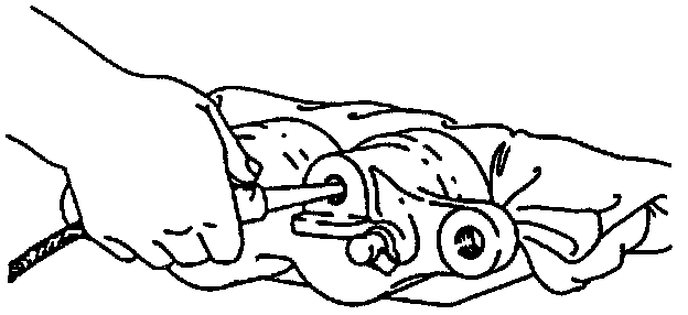 4. Piston seals from grooves in the caliper bores with a small wooden or plastic tool.