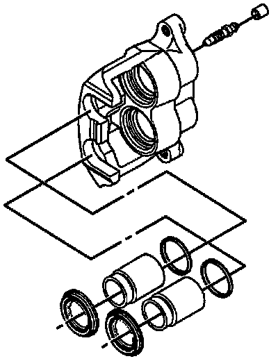 NOTE: Clean all parts in clean, denatured alcohol. Dry with filtered, unlubricated compressed air. Blow out all passages in caliper housing and bleeder valve.