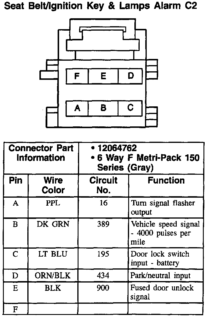 Seat Belt/Ignition Key & Lamps Alarm: C2: