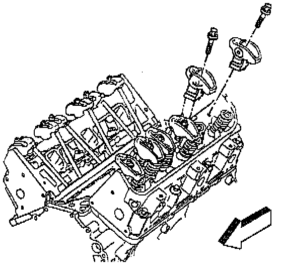 3. Install the rocker arm bolt. Tighten the bolt to 14 Nm (124 inch lbs.) plus 30 degrees.
