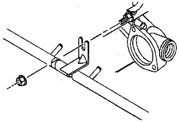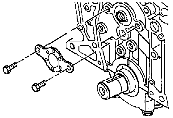 b. Remove the thermostat coolant bypass pipe retaining bolt, nut, and screw.