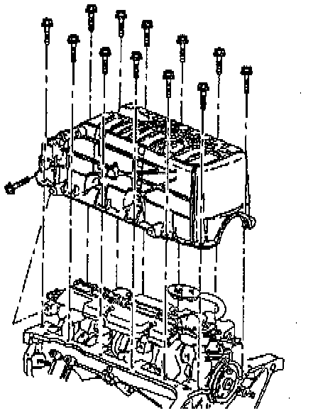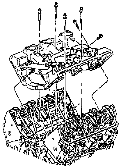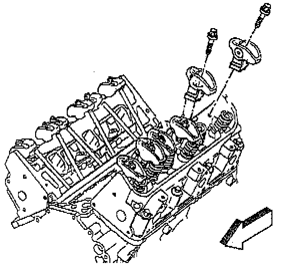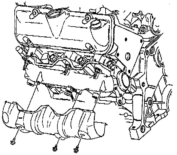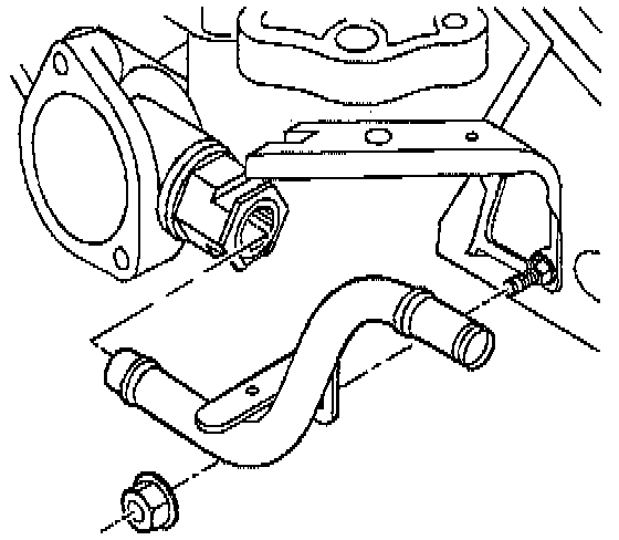 l. Remove the thermostat bypass pipe nut from the upper intake manifold.