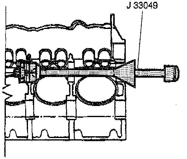 ^ Assemble Camshaft Bearing Remover/Installer tool No. J 33049, or equivalent. Tighten the expander assembly snug with the camshaft bearing.