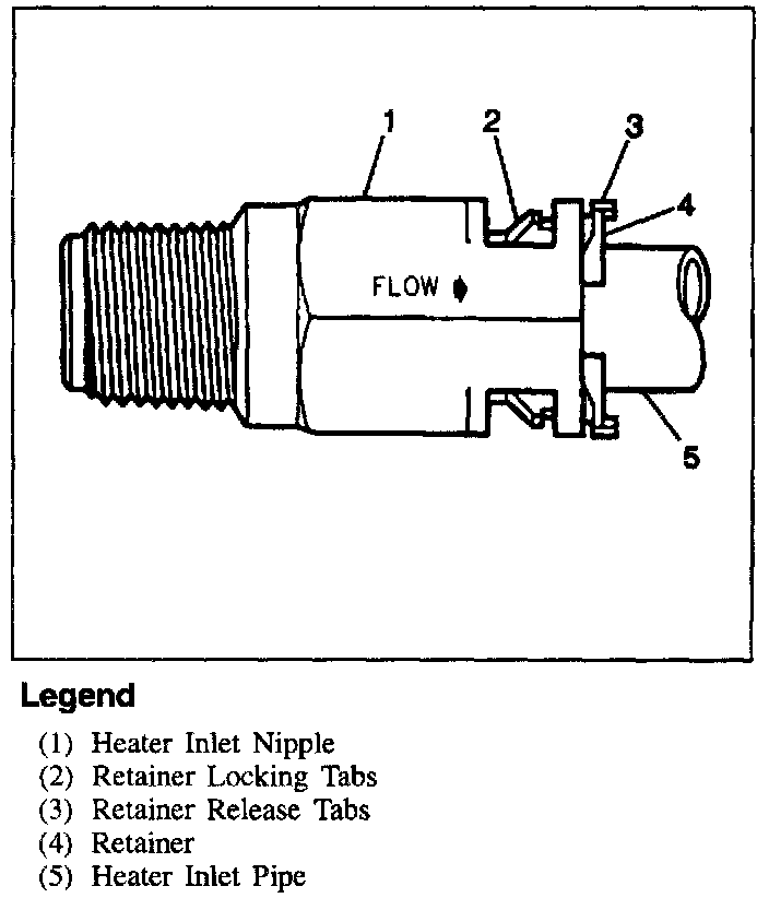 ^ If replacing heater inlet nipple, remove retainer from pipe and discard, as new nipple is equipped with retainer.
