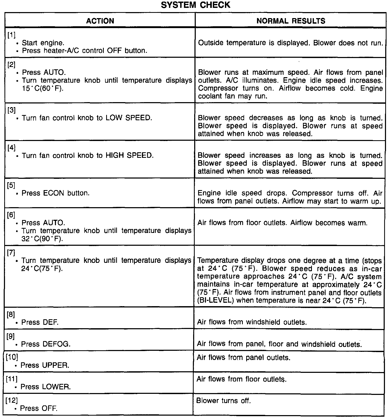 System Check - Air Delivery & Temperature Controls
