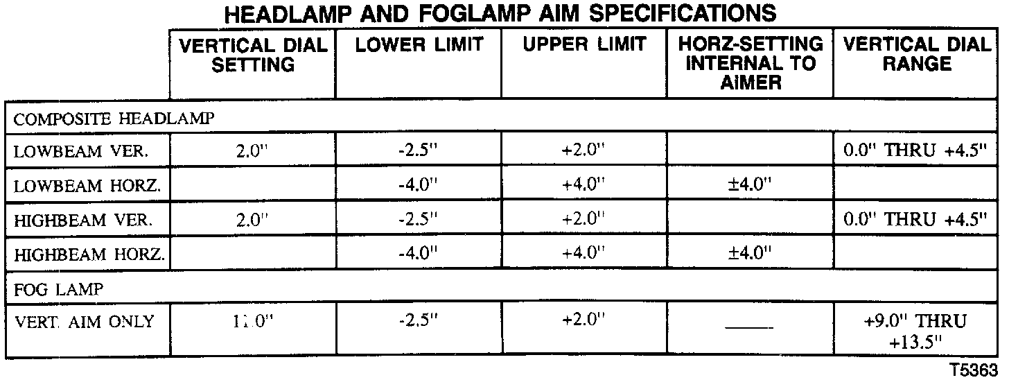 Procedure: When properly aimed, the top edge of the high intensity zone is set at the horizontal centerline of the fog lamp, and the left edge of the high intensity zone is set at the vertical centerline.