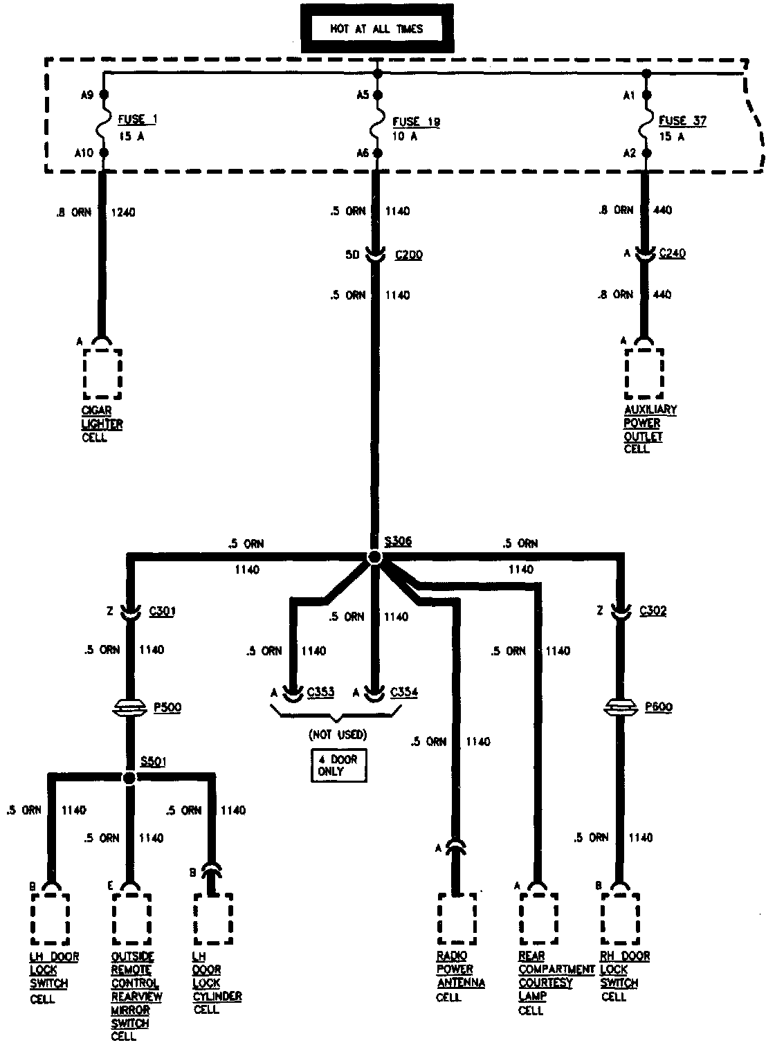 Cigar Lighter (1), Power Accessory #1 (19) And Auxiliary Power (37) Fuses: