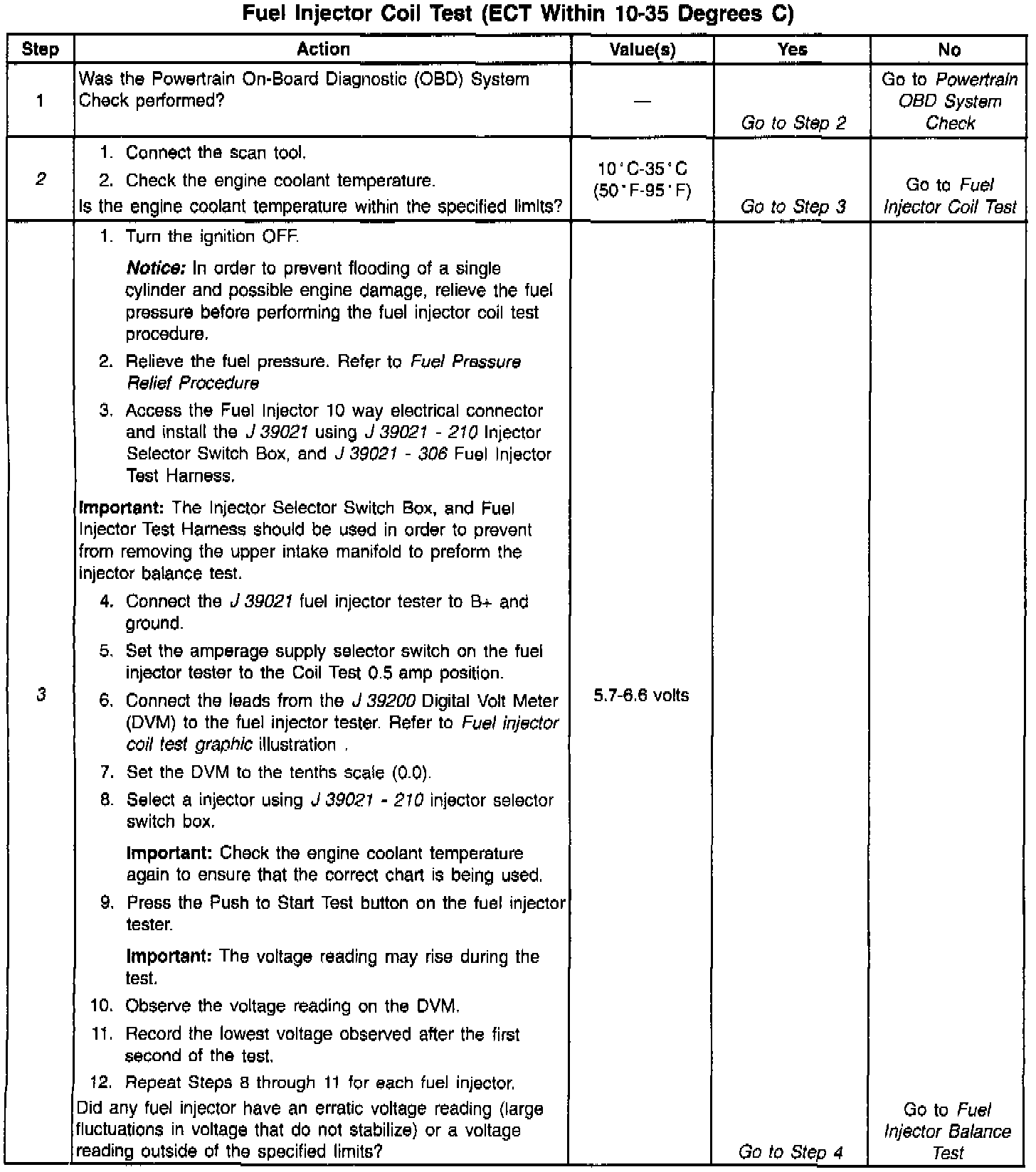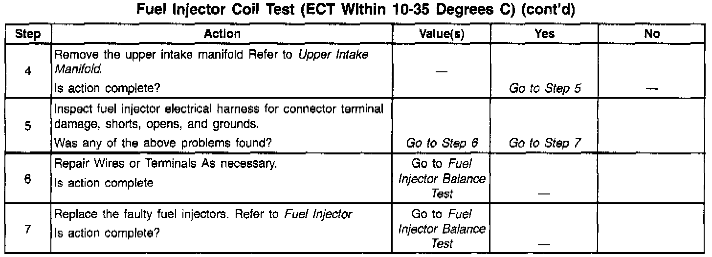Fuel Injector Coil Test - ECT Temp Between 10-35 Deg C