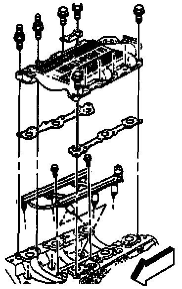 16. Remove the upper intake manifold bolts and studs.