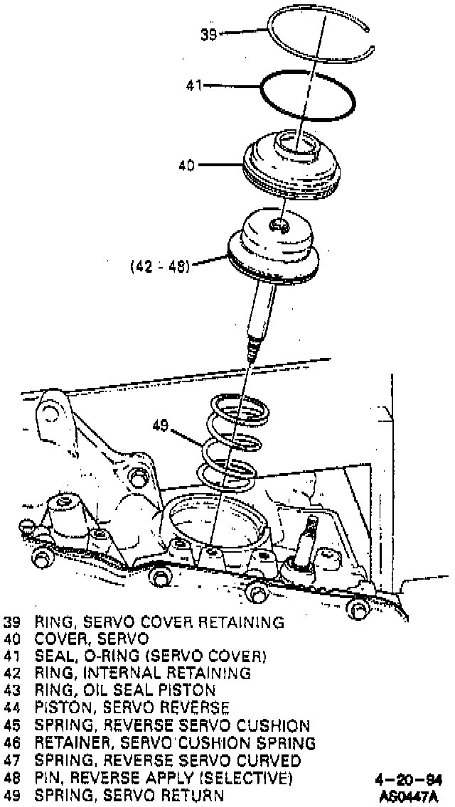 3. Snap ring, reverse servo cover, servo piston, sealing ring, apply pin and servo spring.