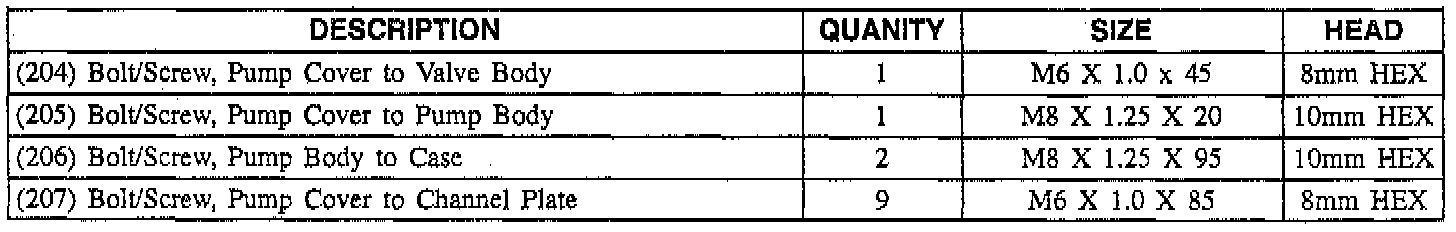 3. Pump bolts/screws.