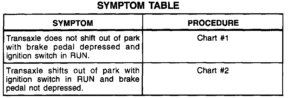 A Symptom Table - Brake Transaxle Shift Interlock