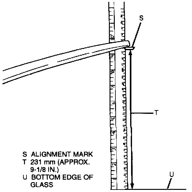 ^ If installing RH wiper arm and blade assembly the blade tip must be 231 mm (approx. 9-1/8 in.) from bottom edge of glass.
