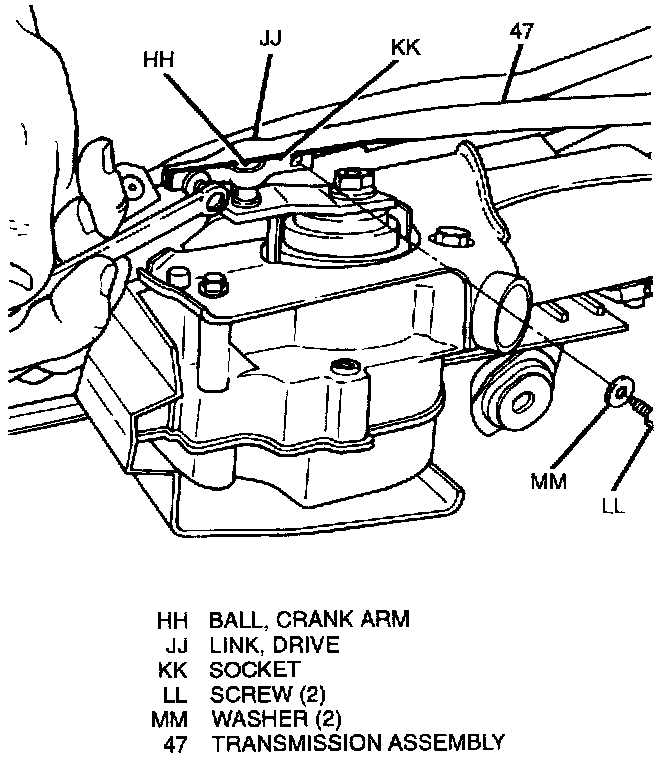 1. Two drive link socket screws (LL), then remove socket (KK) from crank arm ball (1111).