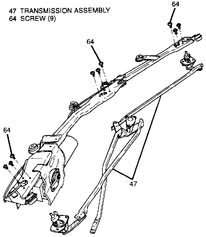 2. Nine screws (64) to detach transmission assembly (47) from module.