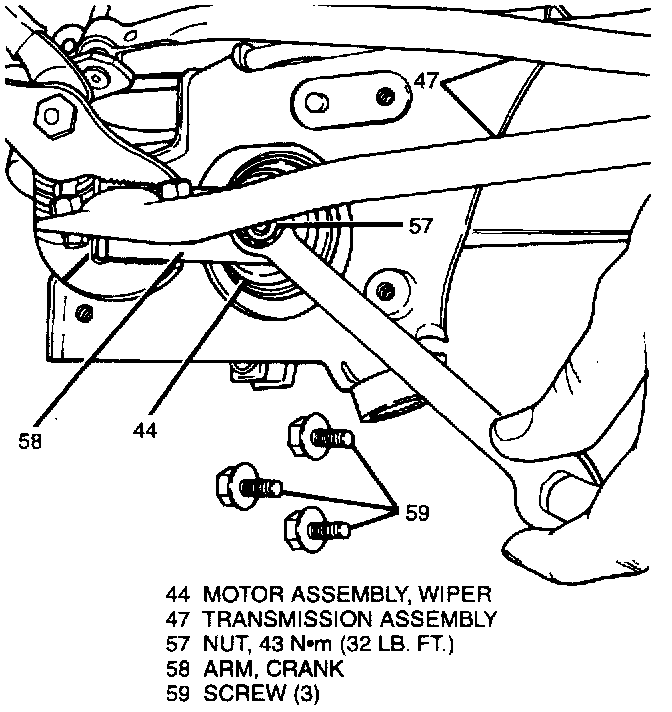 2. Three screws (59). then remove wiper motor assembly for repair or replacement.
