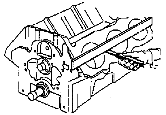 7. Check the surface for flatness. Use a straight edge and a feeler gauge. If the cylinder head deck flatness exceeds 0.1 mm (0.004 inches), the surface should be machined flat. If more than 0.25 mm (0.010 inches) must be removed, replace the block.