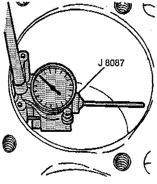 13. Place a dial indicator stem on the transaxle mounting bolt hole boss and set the indicator to 0.