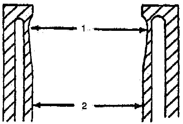 18. Inspect the cylinder bore. Use the Cylinder Bore Checking Gauge at locations 1 and 2 shown in order to measure for wear, taper, runout and ridging.