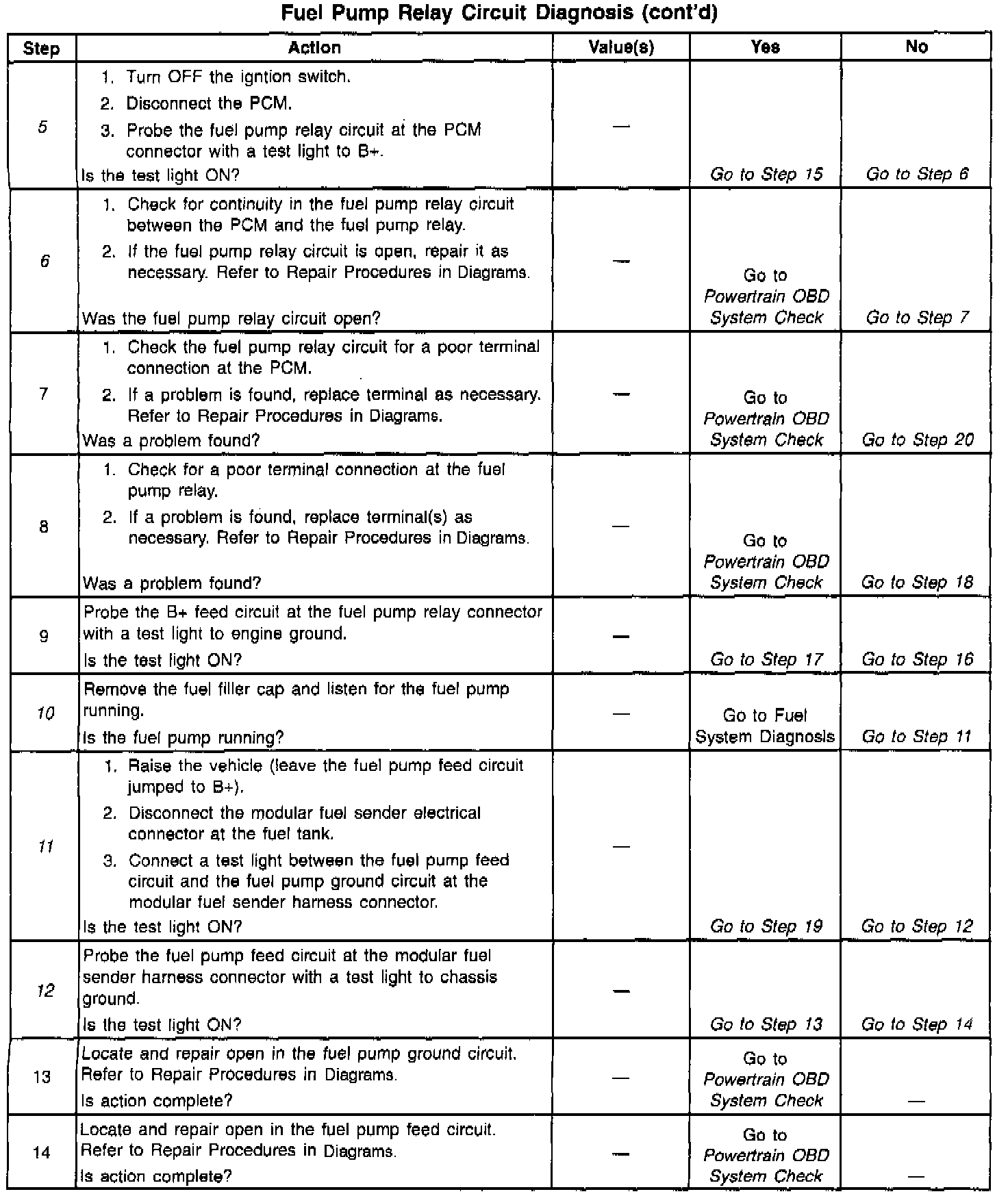 11. Checks the fuel pump feed circuit between the fuel pump relay and the fuel pump. Also checks the fuel pump ground circuit.
