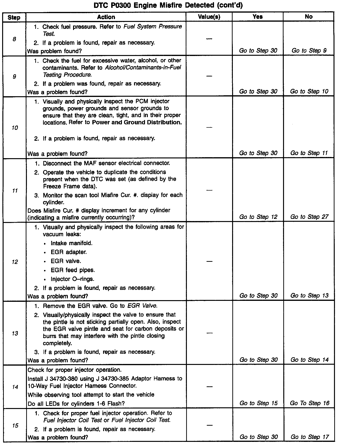 5. In steps 5 through 13, check for conditions that can cause a random cylinder misfire.