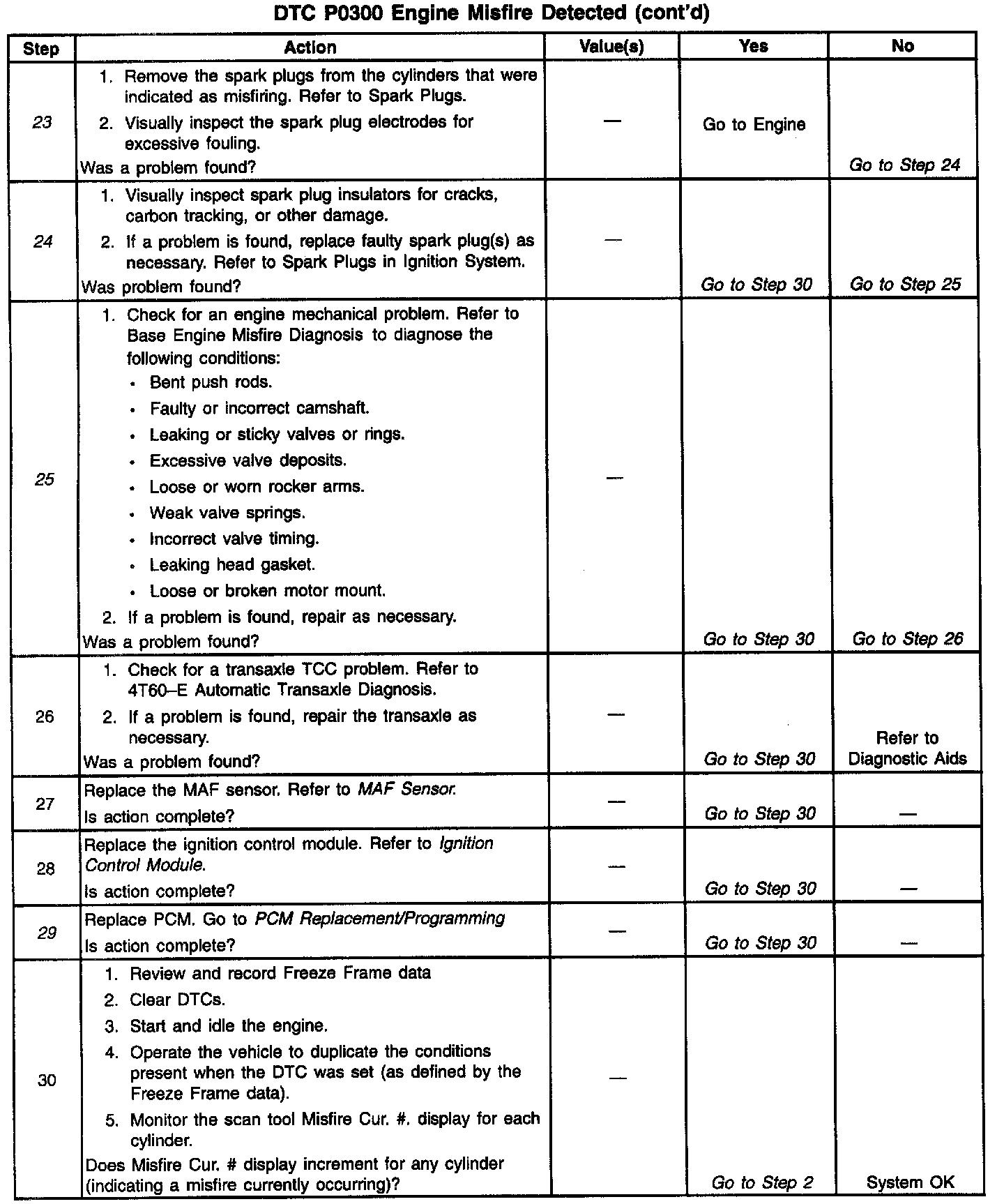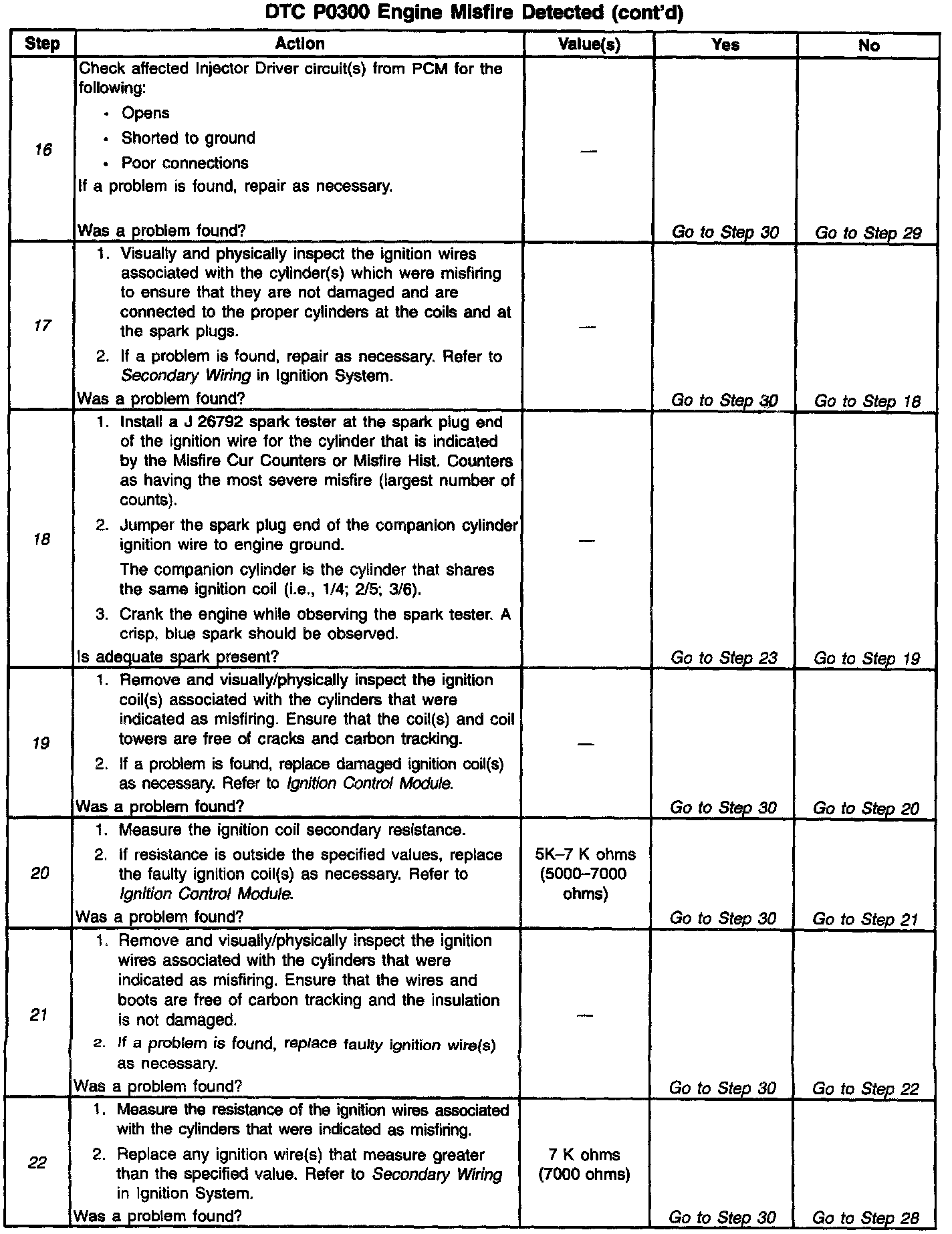 17. In steps 17 through 25, check for conditions that can cause a non-random or single cylinder misfire.