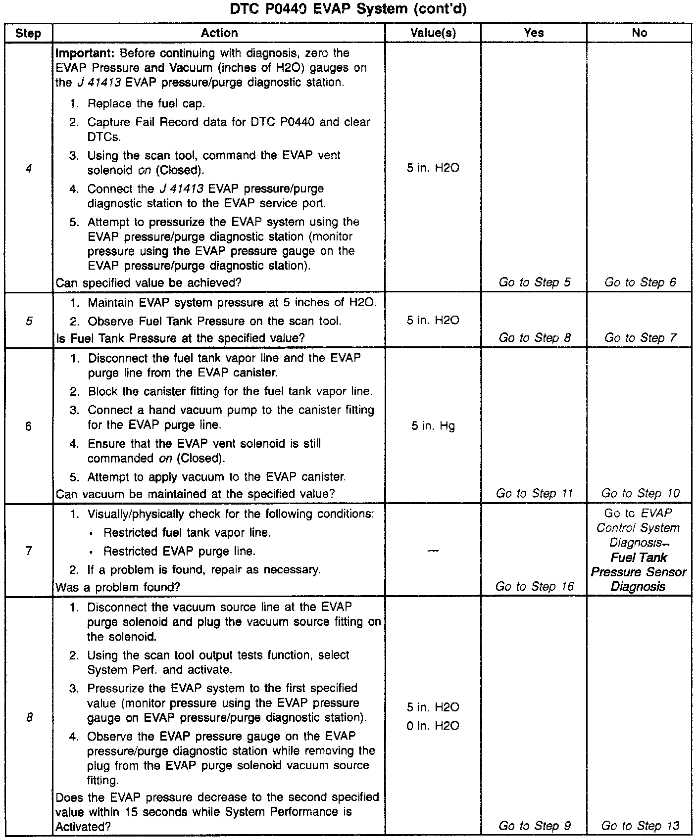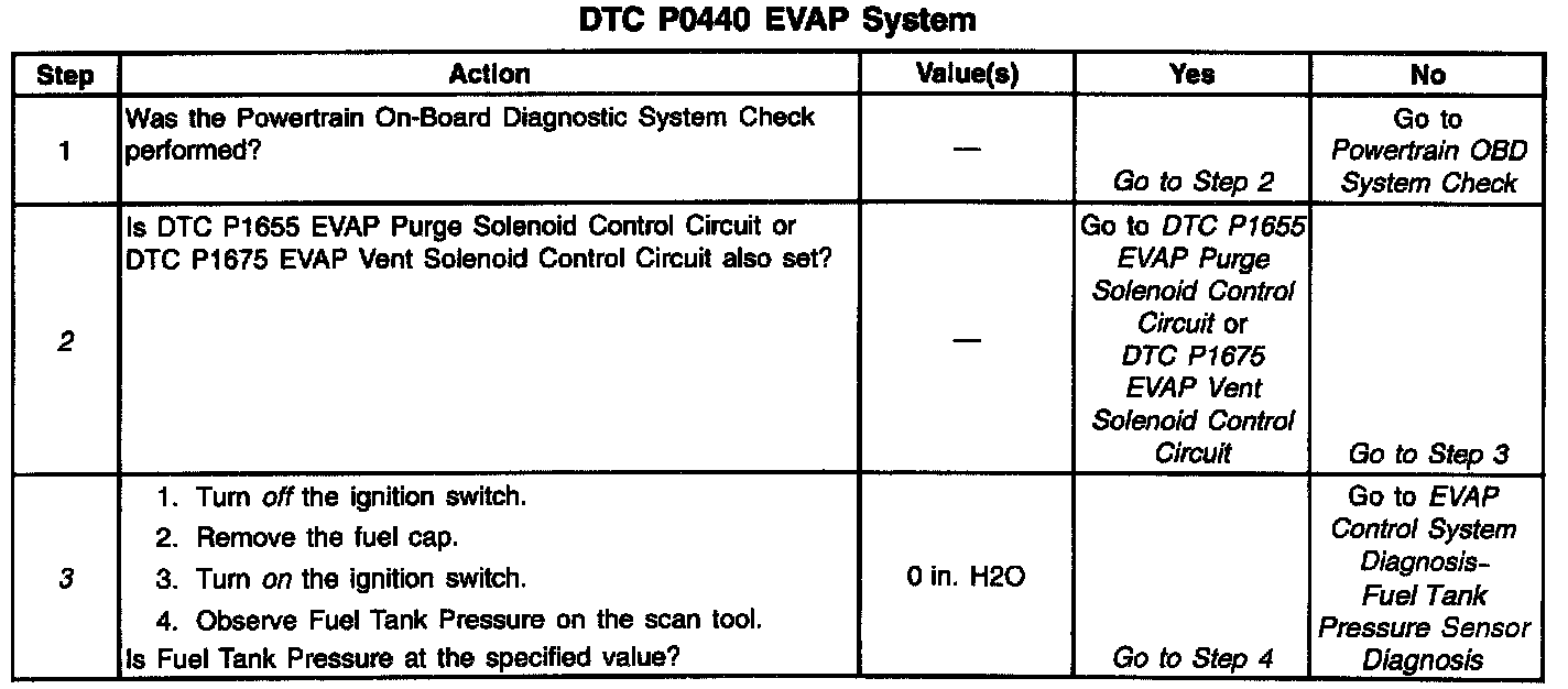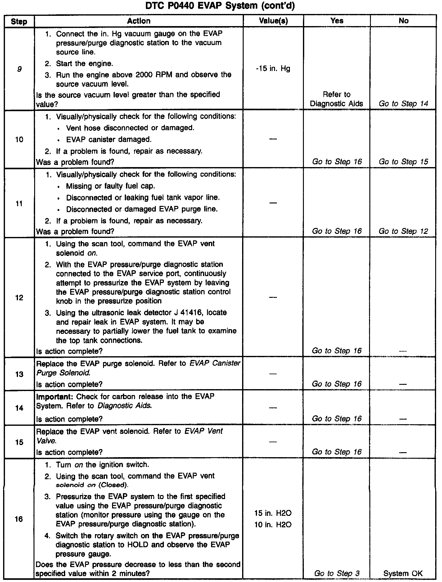 2. If a vent solenoid or EVAP purge solenoid electrical fault is present, the purge system will not operate correctly. Repairing the electrical fault will very likely correct the condition that set DTC P0440.