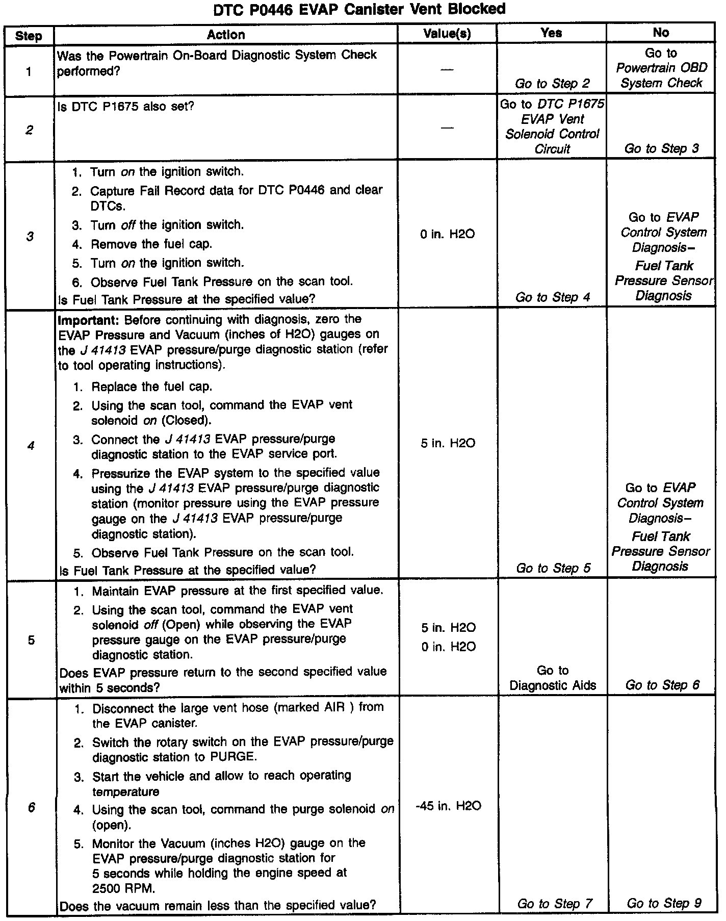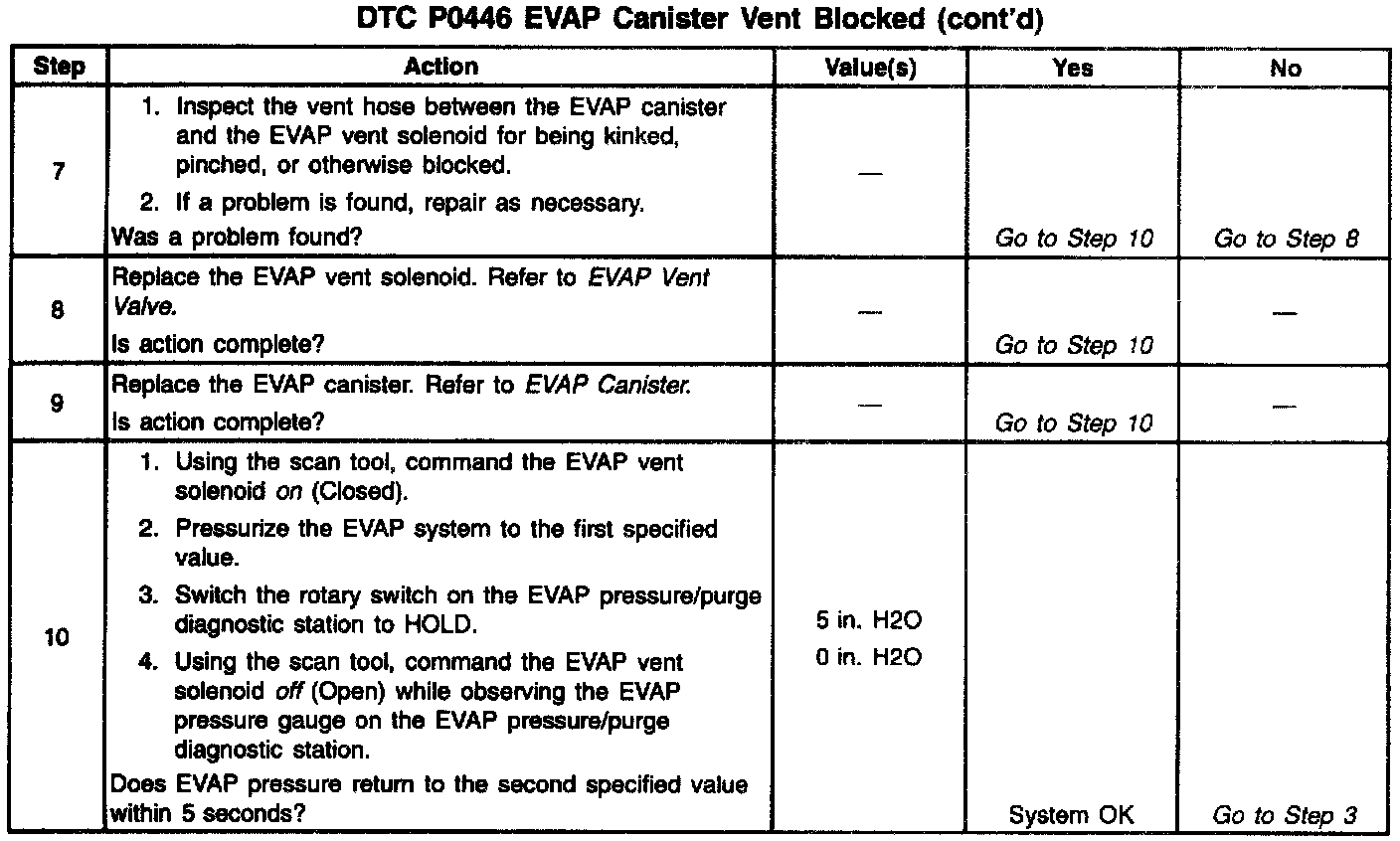 2. If a vent solenoid electrical fault is present, the purge system will not operate correctly. Repairing the electrical fault will very likely correct the condition that set DTC P0446.