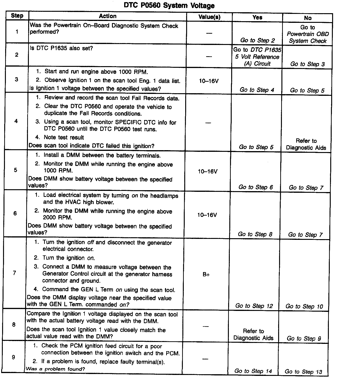 If DTC P0560 cannot be duplicated, reviewing the Fail Records vehicle mileage since the diagnostic test last failed may help determine how often the condition that caused the DTC to be set occurs. This may assist in diagnosing the condition.