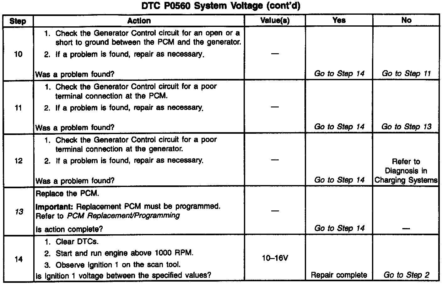 ^ System voltage monitored at the PCM ignition feed circuit is below 10 volts or above 16 volts.