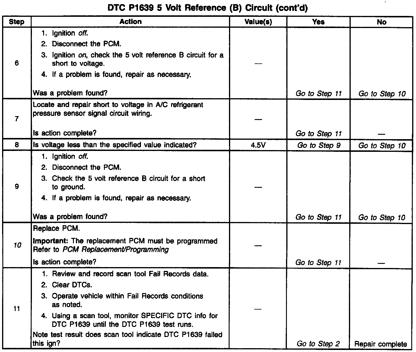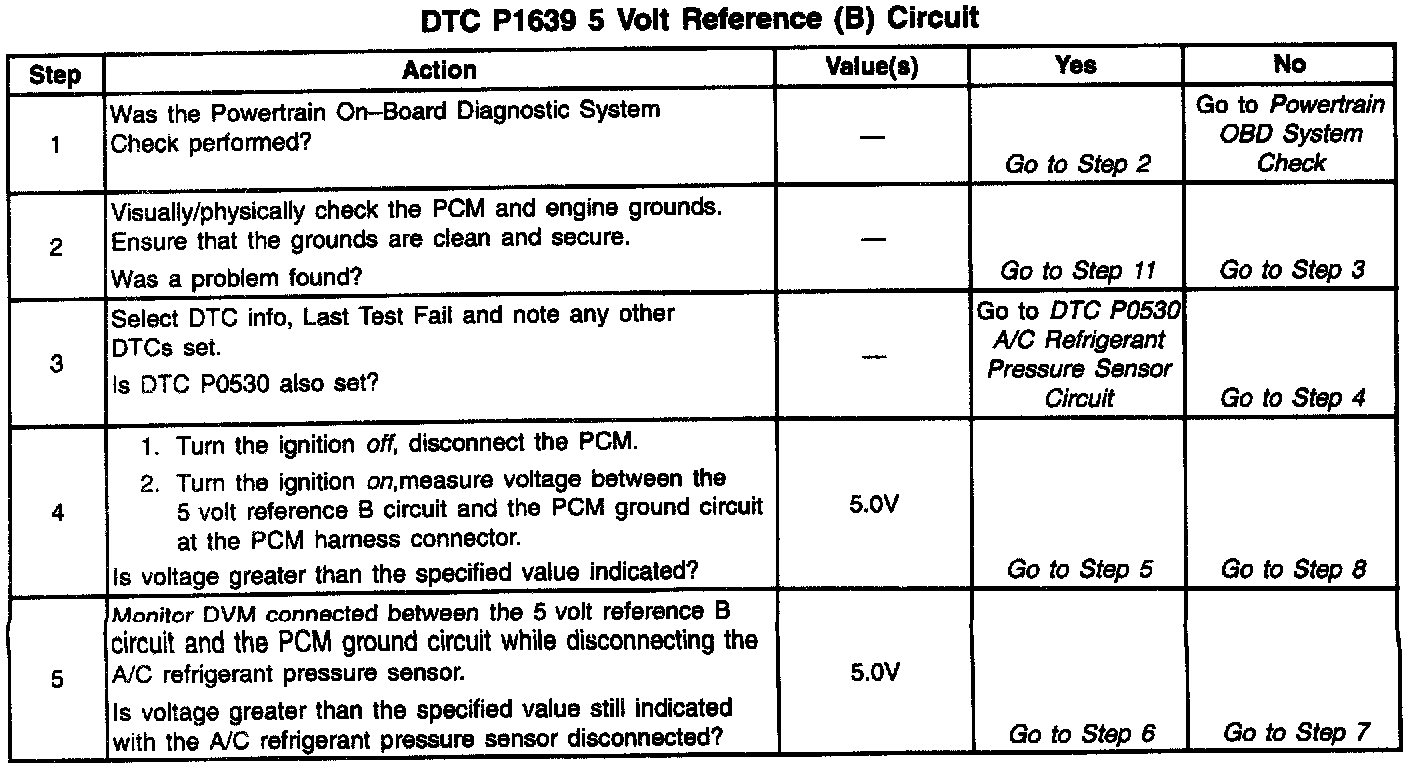 The PCM uses the 5 Volt Reference B circuit as a sensor feed to the A/C Refrigerant Pressure Sensor. The PCM monitors the voltage on the 5 Volt Reference B circuit. If the voltage is out of tolerance, the PCM will set DTC P1639.