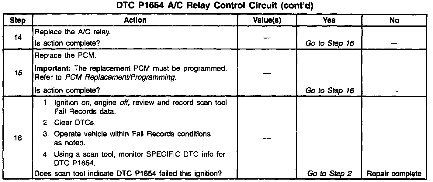 Unlike the Quad Driver Modules (QDMs) used in prior model years, ODMs have the capability of diagnosing each output circuit individually. DTC P1654 set indicates an improper voltage level has been detected on A/C relay control circuit.