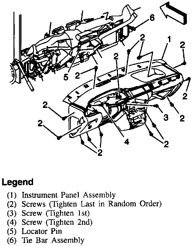 2. Screws connecting instrument panel to tie bar.