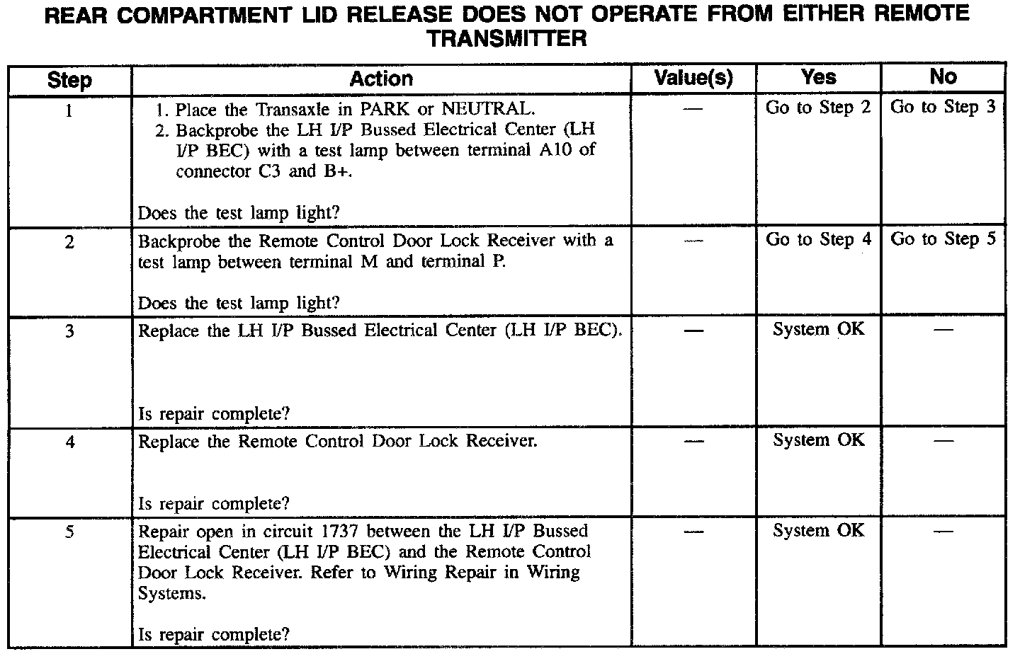 Rear Compartment Release Inoperative With Transmitter