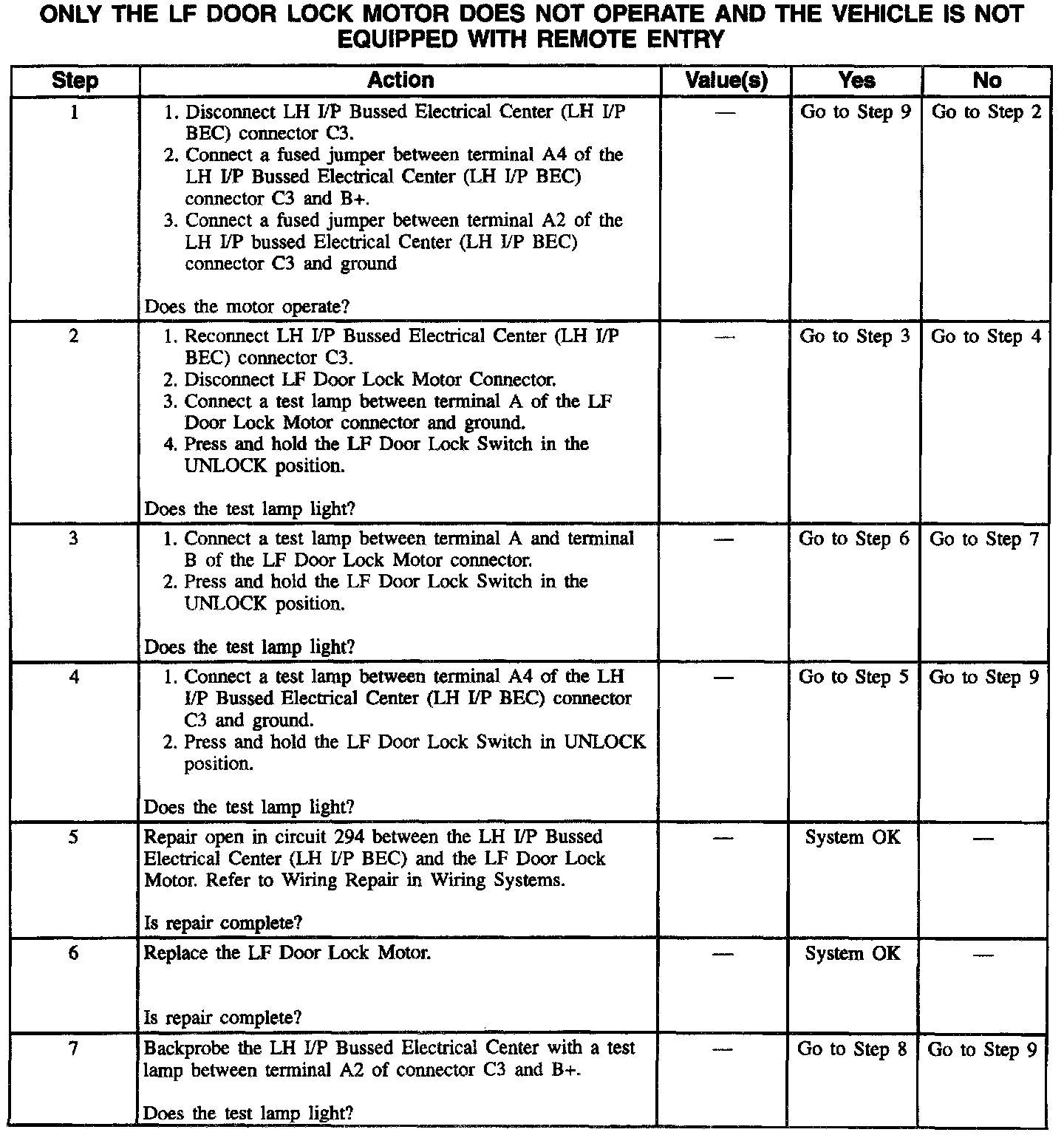 Only The LF Door Lock Motor Does Not Operate (Part 2 Of 2):