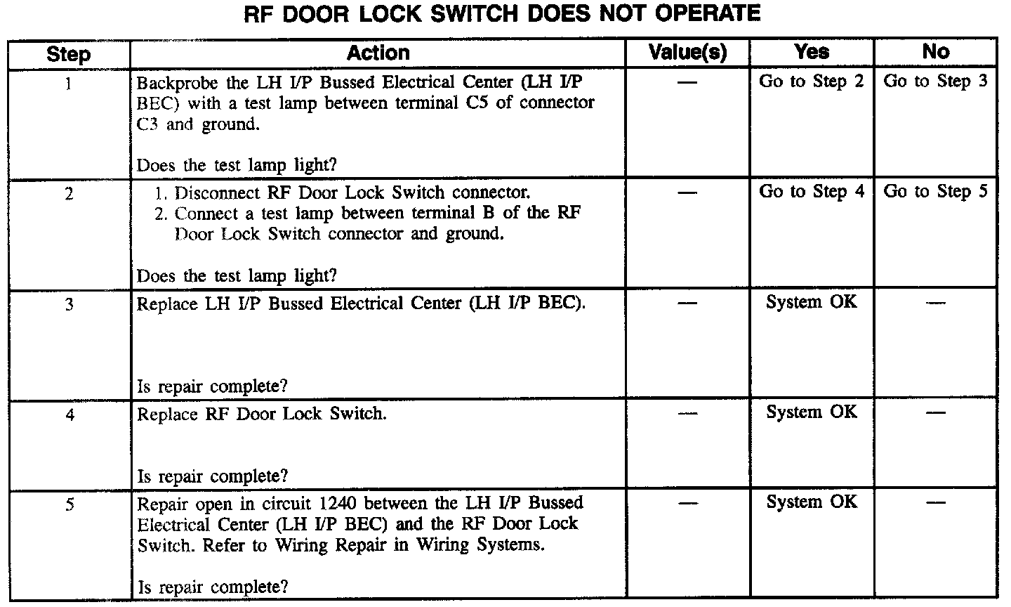 RF Door Lock Switch Does Not Operate: