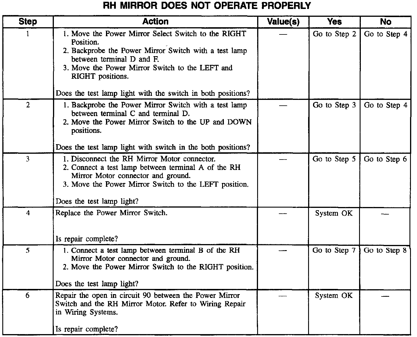 RH Mirror Does Not Operate Properly (Part 2 Of 2):