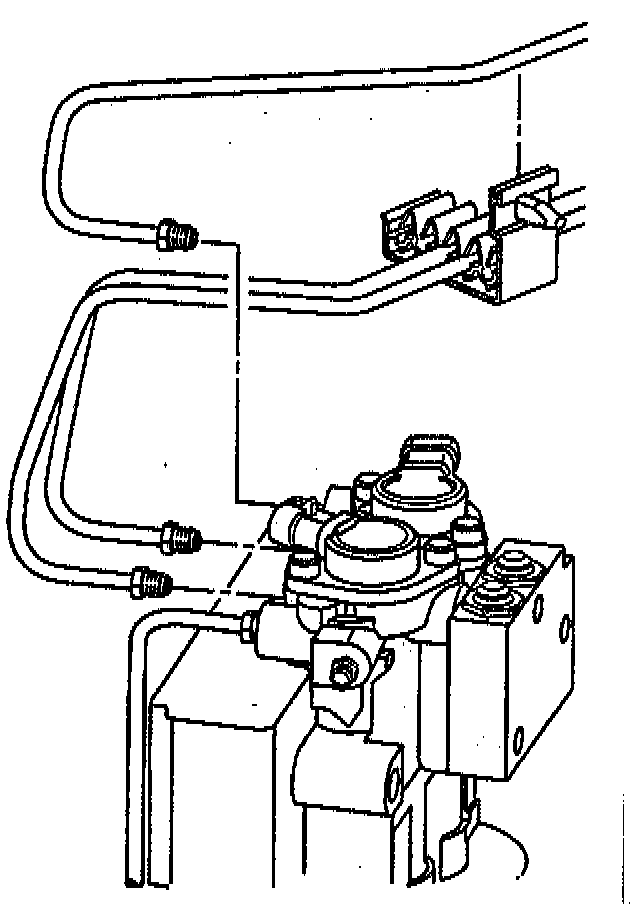 WARNING: Make sure brake pipes are correctly connected to BPMV. If brake pipes are switched by mistake (inlet vs. outlet), wheel lockup will occur and personal injury may result. Tighten Brake pipes to 24 Nm (18 ft. lbs.).