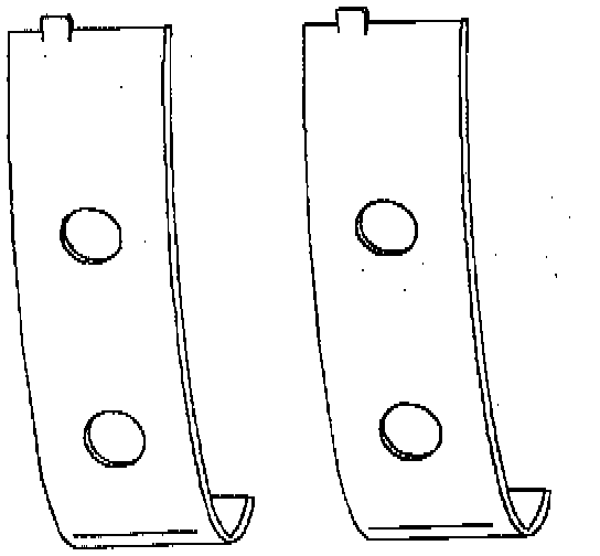 ^ Looseness or rotation indicated by flattened tangs and wear grooves