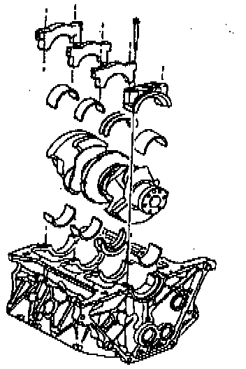 CAUTION: In order to prevent the possibility of cylinder block or crankshaft bearing cap damage, the crankshaft bearing caps are tapped into the cylinder block cavity using a brass, lead, or a leather mallet before the attaching bolts are installed. Do not attach the bolts to pull the crankshaft bearing caps into the seats. Failure to observe this information may damage a cylinder block or a bearing cap.