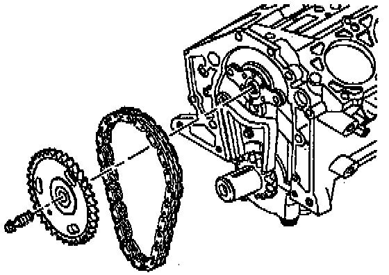 ^ Install a large screwdriver into the camshaft bolt hole in order to support the camshaft.