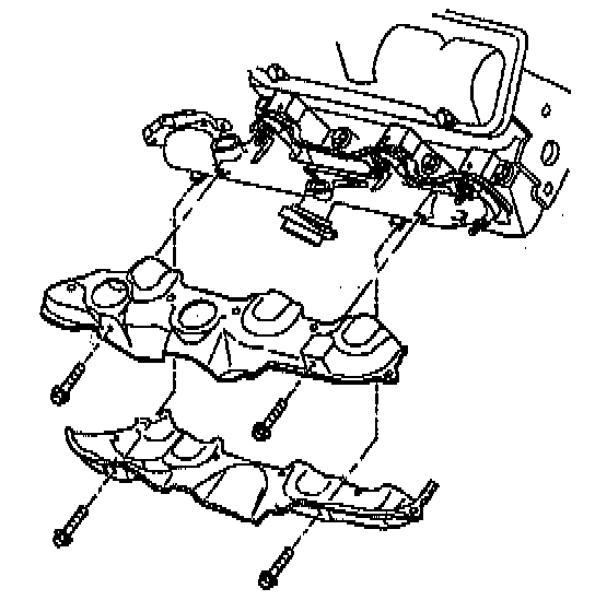 b. Install the exhaust manifold. Loosely, install the heat shield at this time.