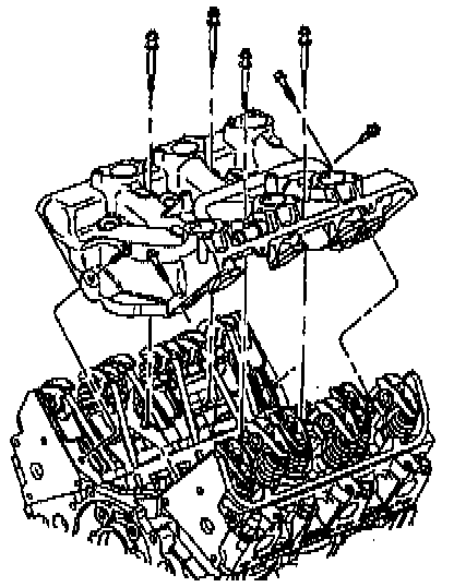 CAUTION: Failure to tighten vertical bolts before the diagonal bolts may cause an oil leak.